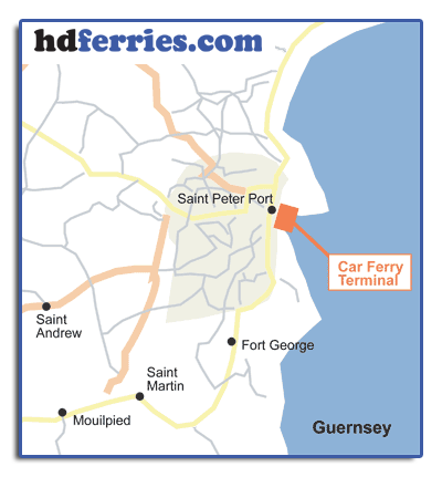 HD Ferries docks in the Guernsey ferry port of St Peter Port.